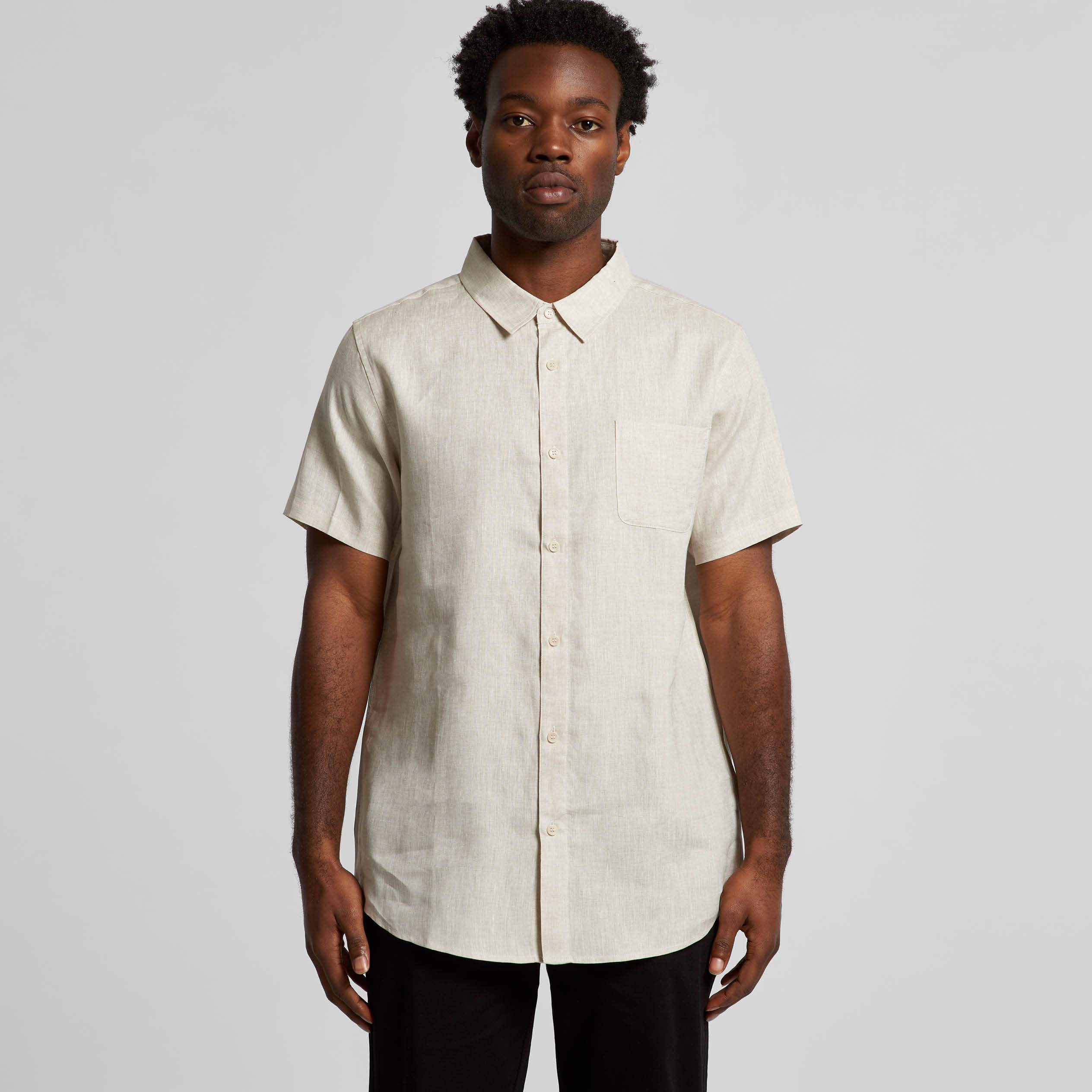Short sleeve shirt, tonal corozo nut buttons, chest pocket, back yoke, preshrunk to minimise shrinkage