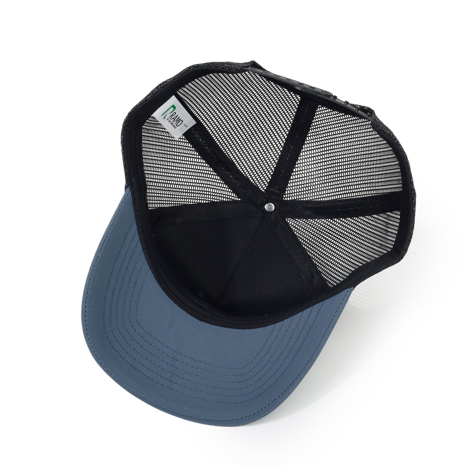Fabric : Mid weight 60% cotton 40% Recycled Polyester front and peak, 100% Recycled polyester mesh back